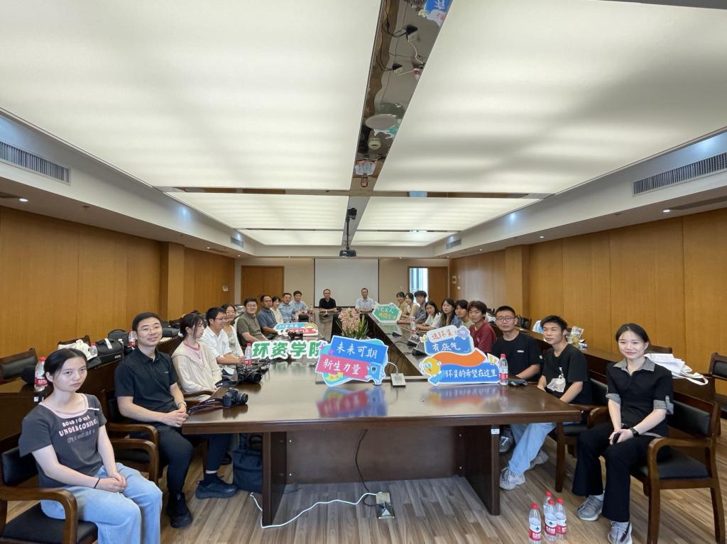在9 号教学楼 205 举行了新生家长见面会。会议以线上线下的方式同步进行。见面会由学院党委副书记张进主持。家长们积极参与,线下线上热情高涨。李俊书记致欢迎词,重点表达了持续学习的重要性,希望新生们在浙科大遇见最美大学,奋斗最美青春,成就最美自己。刘赫扬院长重点介绍了学院基本情况,希望新生尽快适应大学生活,在未来四年绽放光彩。随后,环境工程系党支部书记柴彦君和轻化工程系系主任郭大亮分别介绍了两个学科的专业特色与方向、师资队伍、硬件设施及人才培养模式等情况。在最后的互动环节,家长们踊跃参与,与在场的领导和各位老师进行了深入的交流,现场气氛热烈。