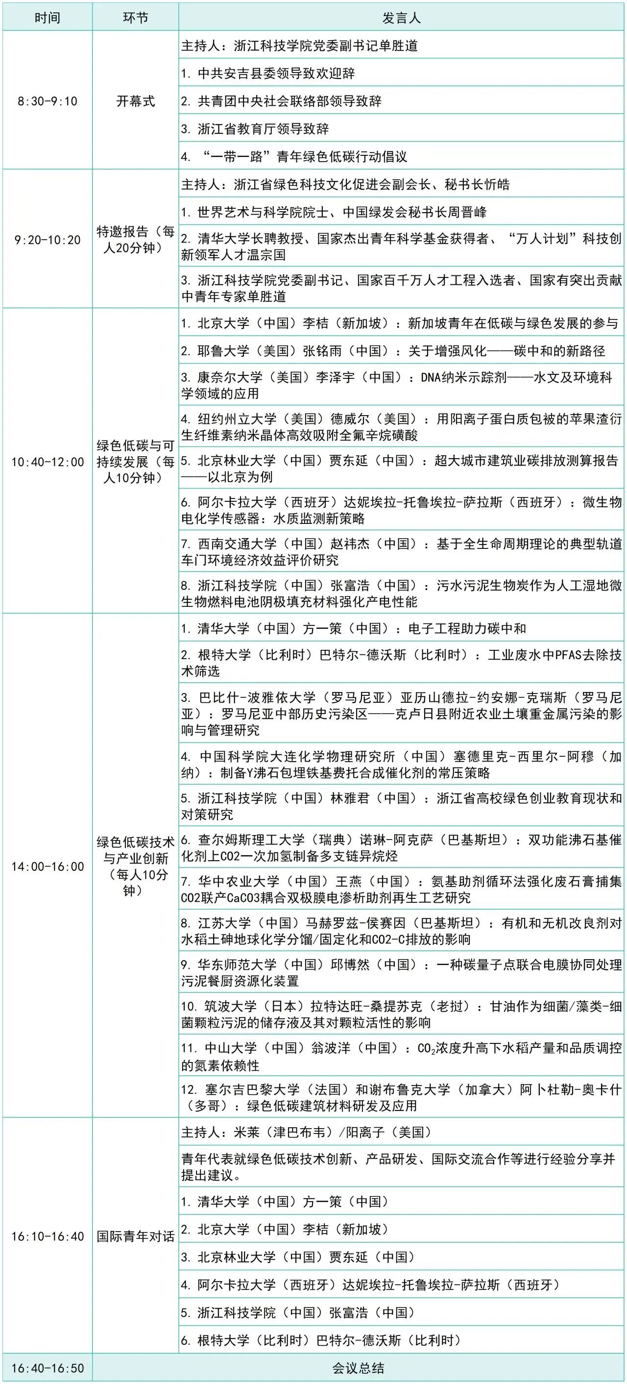 Hosting organizers: Anji Youth Federation, Zhejiang Circulation Economics Association, Zhejiang Green Science and Technology Culture Promotion Association, Anji Campus Management Committee of Zhejiang University of Science and Technology, CCYL ZUST Committee, School of Economics Trade and Management of Xinjiang Institute of Technology,School of International Education of Zhejiang University of Science and Technology, School of Environment and Natural Resources of Zhejiang University of Science and Technology