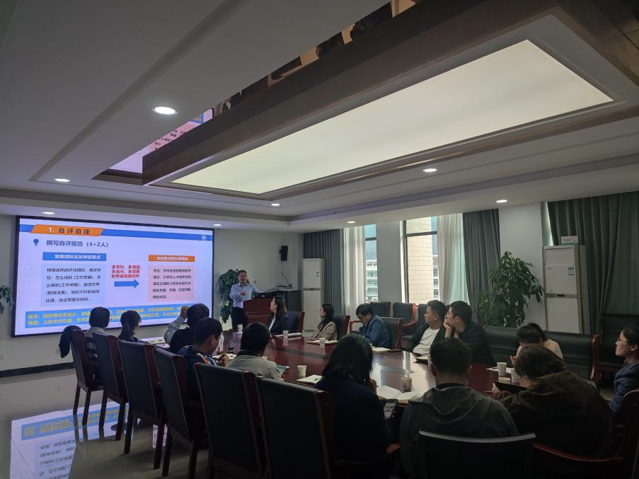 的相关情况,从新一轮审核评估的特点,方案指标解读和报告撰写,学校和专业的主要评建工作等方面内容展开,重点围绕新一轮审核评估的特点、指标体系解读、申请报告撰写、自评报告梳理、迎评工作准备等方面进行了全面细致讲解和经验交流。