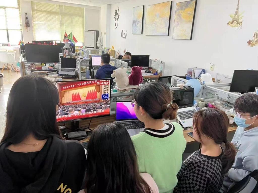 党总支组织师生党员在党员之家、实验室、会议室等地集中收看大会盛况,各支部组织所属党员在各自岗位和寝室同步收听收看。
