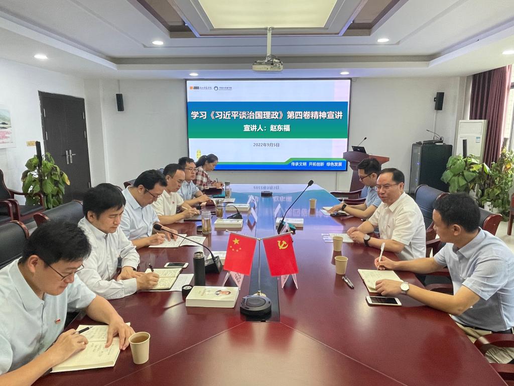 调研指导,并为学院理论学习中心组宣讲《习近平谈治国理政》第四卷精神。学校办公室主任应荣球和学校办公室成晓越老师陪同调研。51tv