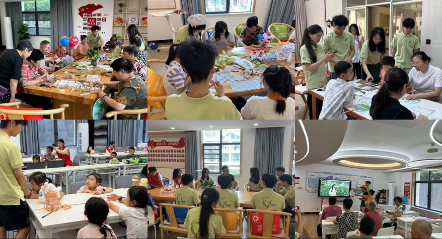 实践团面向成人及老年群体同步开展科普宣讲活动,将低碳知识融入社区生活场景,推动绿色知识惠及全民。开展一对一访谈与小组座谈,深入了解居民对低碳的认知、实践困难及知识需求,在小和山社区开设“废旧纸盒改造工作坊”,让居民亲身体验资源循环利用;设计低碳知识游戏棋,以趣味方式提升老年人环保认知。结合茶乡特色,在龙坞社区组织“旧布书签制作”等活动,向茶农、游客及居民传递废弃物资源化理念。在各社区播放绿色低碳主题宣传视频,将高校生产力转化为公共科普资源,形成“视听+实践”双重科普体验,通过“布袋替代塑料袋”“EPS泡沫创意再利用”等案例,输出可持续生活方案。