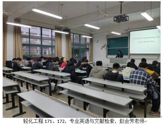 周三上午1-2节,轻化工程171、172,专业英语与文献检索,赵会芳老师,应到41人,7:50分到教室20人,8.00到教室28人。老师备课充分,学生听课较认真。