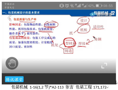 1、包装产品系统设计 1-16(1,2节) *实验中心楼-228 陈玲江 包装工程171,172。应到43人,实到43人,教师备课充分,线上课堂秩序良好。