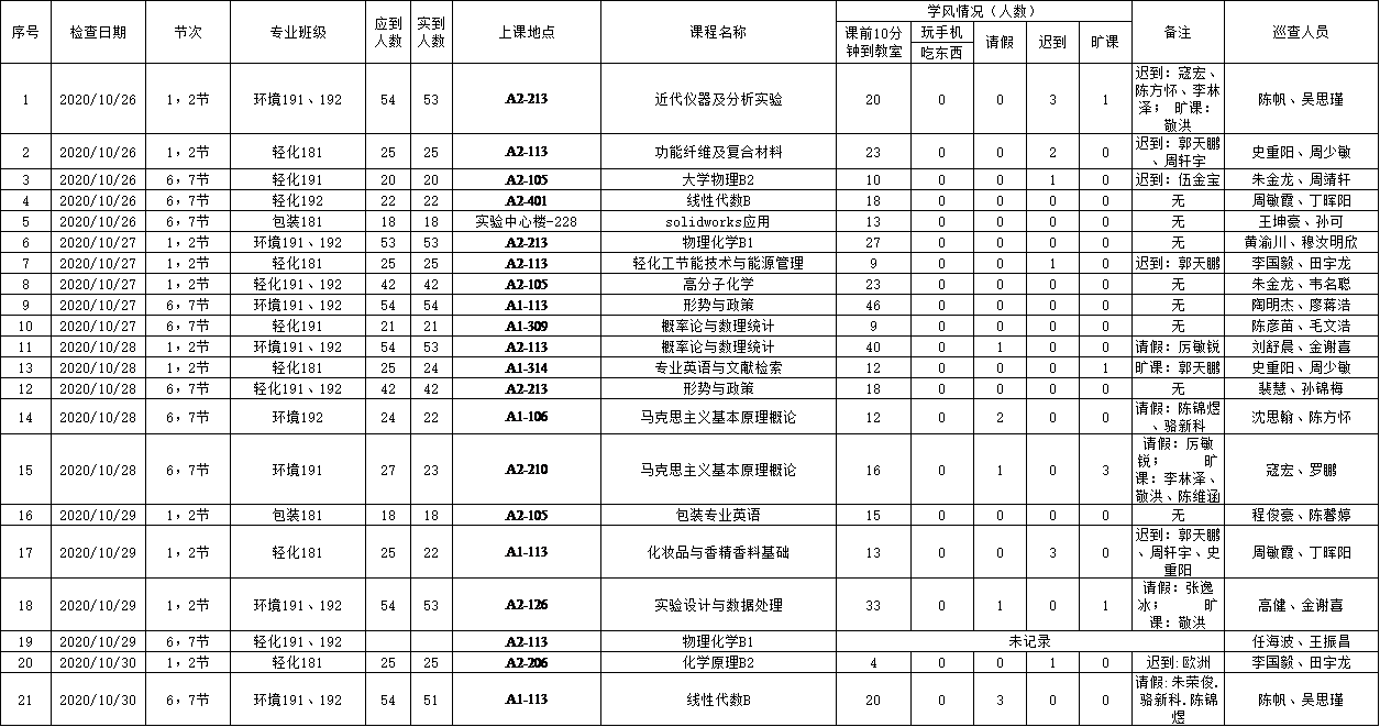 学风检查情况: