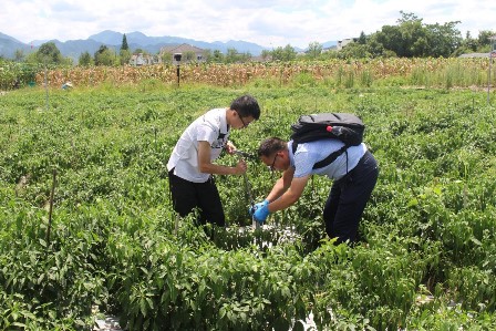 2018年7月13日,生态环境研究院院长单胜道教授带领团队研究人员,在安吉县农业局相关领导的陪同下,先后走访了安吉县万加丰水稻专业合作社、安吉七彩灵峰农业发展有限公司等农业企业,考察了当地有机肥替代、农田生态环境状况,就沼液精准施用、中低产田改良和土壤污染修复等作了深入交流,以及推进种养废弃生物质循环利用、土壤培肥改良修复等方面提出了对策建议,并探讨了合作建设研究基地的可行性。
