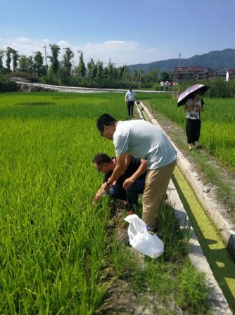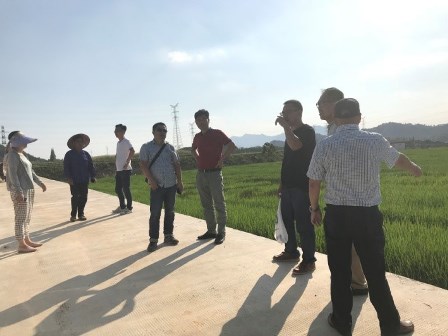 2018年7月20日,生态环境研究院院长单胜道教授带领团队研究人员,在浙江省耕地与肥料局、富阳区农业局相关领导的陪同下,先后走访了富阳区环山乡芳泉村、新桐乡包家淇、青浦垄等水稻种植区和仁创科技集团生态海绵水田示范区,考察了当地农田生态环境状况,对有机肥施用状况、新开垦农田改良培肥和土壤污染修复等作了深入交流,就推进种养废弃生物质循环利用、土壤改良培肥和重金属污染修复等方面提出了对策建议,并探讨了合作建设试验基地的可行性。