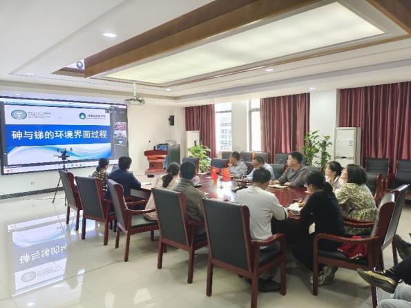师生做题为“砷与锑的环境界面过程”的学术报告。报告由环境工程系主任方婧教授主持,学院副院长胡志军教授致欢迎辞,学院专业教师以及研究生等30余人参加了报告会。