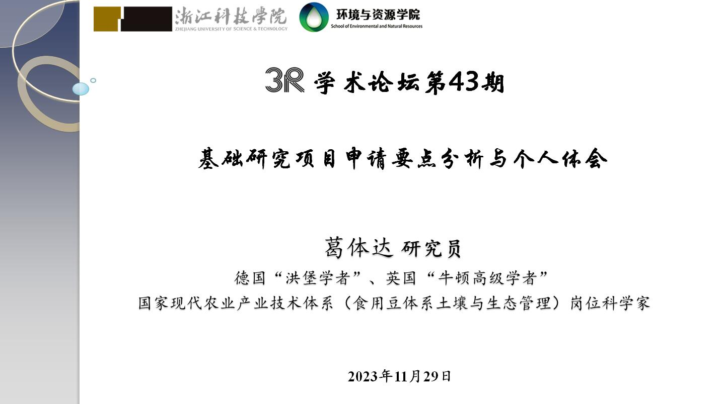 在报告中葛体达研究员首先简要介绍个人教育、工作经历以及科研方向,随后详细讲解了基础研究项目申报前的准备工作、申报书摘要的撰写、项目科学问题、项目特色和创新以及申报书的润色修改和预审等相关环节的具体要求和注意事项,建议老师们在基础研究项目选题、关键词、摘要撰写、项目科学问题和创新点凝练等细节上做足功课。最后葛体达研究员同参会教师进行了互动,就项目申报书撰写以及项目特色和创新点凝练等问题进行了细致研讨。