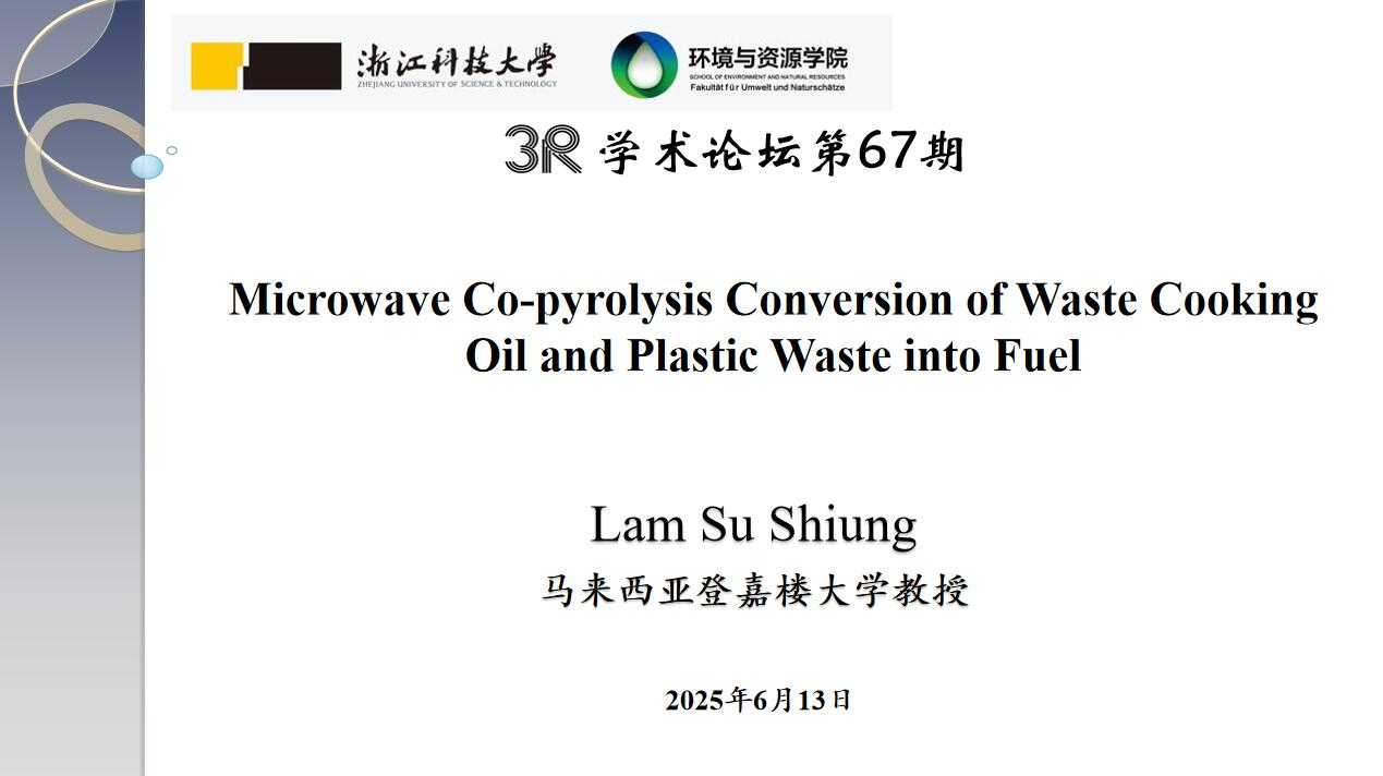 并作“3R”论坛第67期学术报告“Microwave Co-pyrolysis Conversion of Waste Cooking Oil and Plastic Waste into Fuelt”。报告由学院副院长张进教授主持,环境工程系教师、研究生等30余人参加了报告会。