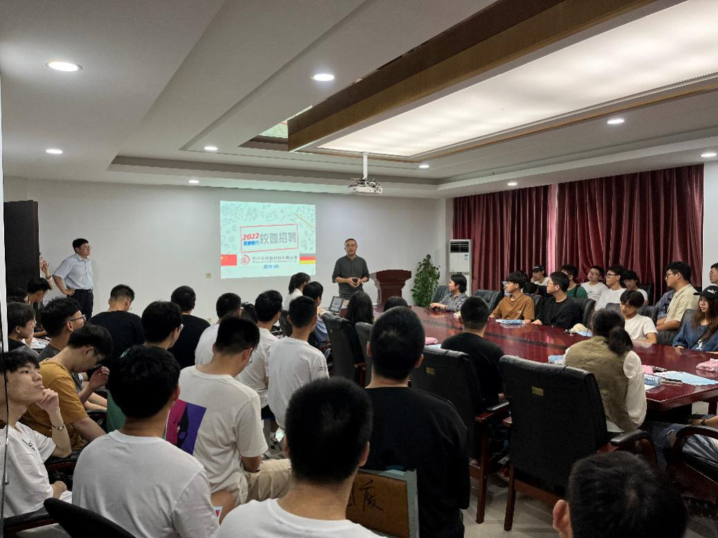华邦古楼新材料有限公司人事部门总监田雪松女士与人事经理徐媛女士就51tv-51tv官方最新地址发布页、公司特色、工作环境、生活条件、薪资福利、发展途径等方面进行了系统介绍,陈建斌总工对同学们感兴趣的问题作了详细讲解。随后,同学们就普遍关注的实习就业岗位发展前景、薪资待遇等问题积极提问,展开交流。会后,部分同学投递了简历,寻求就业机会。