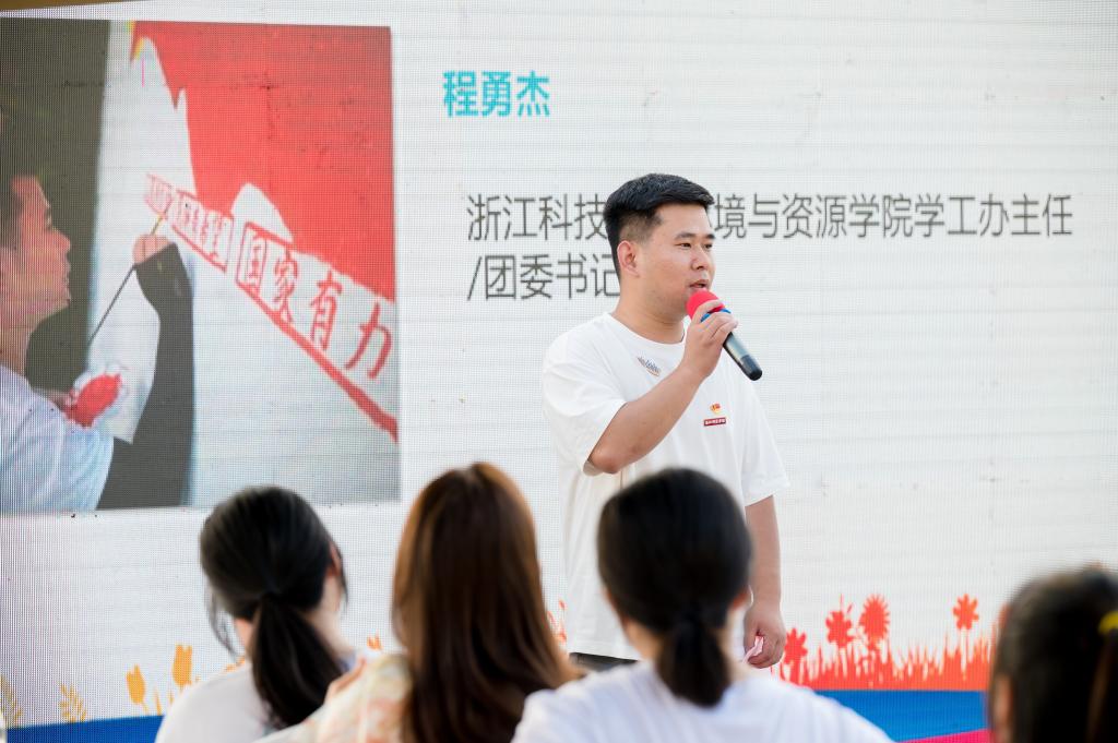 程勇杰代表实践指导教师发言,从浙江科技学院教师和淳安人双重身份作为切入点,介绍了浙江科技学院的办学历程、发展现状和“十四五”时期的发展战略,同时希望从人才培养、科技创新等方面,发挥好校地合作的枢纽作用,主动融入淳安的经济建设和社会发展。51tv