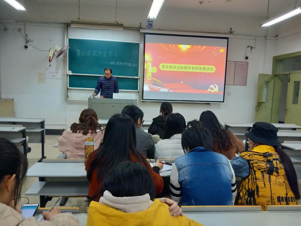 最后支部书记孙耀宇老师结合大家的发言对校第四次党代会报告做了针对性解读,并希望大家在以后的学习生活中,紧紧围绕党代会报告精神,时刻不忘党员身份,做好带头表率。